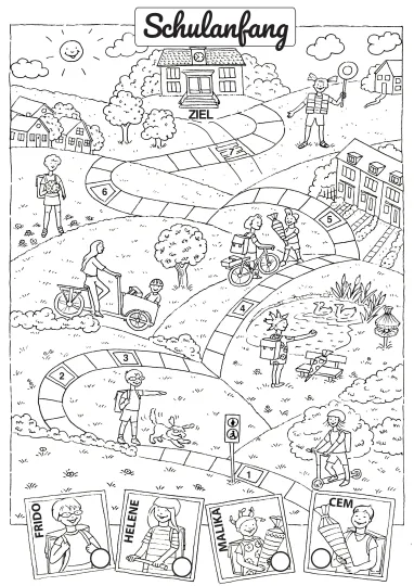 Das Spiel ist geeignet für Kinder verschiedener Altersstufen. Es simuliert den Weg zur Schule mit seinen Herausforderungen und Überraschungen. Die Spieler wählen eine von vier Spielfiguren – Frido, Helene, Ida oder Tom – und bewegen sich auf einem Spielbrett vorwärts, das mit speziellen Ereignisfeldern ausgestattet ist. Diese Felder spiegeln typische Situationen wider, die Kinder auf ihrem Schulweg erleben können, wie das Warten an der roten Ampel oder die unerwartete Begegnung mit dem Familienhund, der nicht mit in die Schule darf.