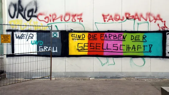 Vielleicht fällt Ihnen beim Lesen der Texte auf, dass die Bezeichnungen weiß und Schwarz in einer besonderen Form erscheinen, wenn von Schwarzen oder weißen Menschen die Rede ist – schwarz ist dann großgeschrieben und weiß entweder auch groß oder klein und kursiv. Viele Menschen, die sich mit diesem Thema beschäftigen, schreiben so. Sie wollen damit deutlich machen, dass mit Schwarz und weiß nicht die Hautfarbe gemeint ist. Viele Weiße sind z. B. dunkelbrauner als viele Schwarze. Als Weiße gelten sie trotzdem. „‚Schwarz‘ und ‚weiß‘ sind keine echten ‚biologischen Tatsachen‘, sondern Gesellschaftskonstrukte; sie benennen die verschiedenen Hintergründe, Sozialisationen und Lebensrealitäten“, heißt es z. B. auf der Website www.derbraunemob.de/faq.