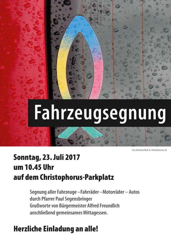 Die obigen Beispiele zeigen: wenn kein eigenes, aktuelles Bild von einer Fahrzeugsegnung mit dem Ortsgeistlichen vorhanden ist, wird eine Umsetzung mit Fremdbildern, soweit überhaupt verfügbar, problematisch. Die Menschen vor Ort erwarten einfach bekannte Gesichter, und nicht das Bild von einem fremden Pfarrer an einem ihnen unbekannten Ort.