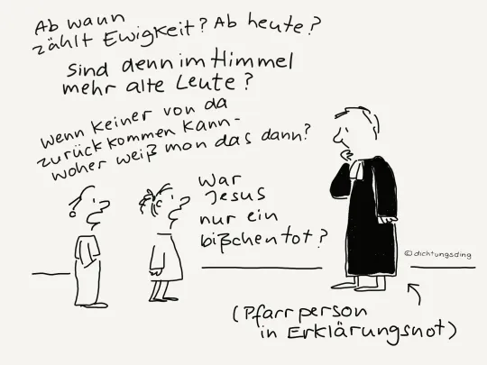 Konstanze Ebel zeichnet seit einigen Jahren regelmäßig Dichtungsdinger, das sind kleine Cartoons, Reime und Zeichnungen, die sie auf Instagram veröffentlicht. Ursprünglich während der Corona-Pandemie begonnen, behandeln ihre Werke mittlerweile eine Vielzahl von Themen – von kirchlichen Fragen über Alltagsbeobachtungen bis hin zur Tagespolitik.
