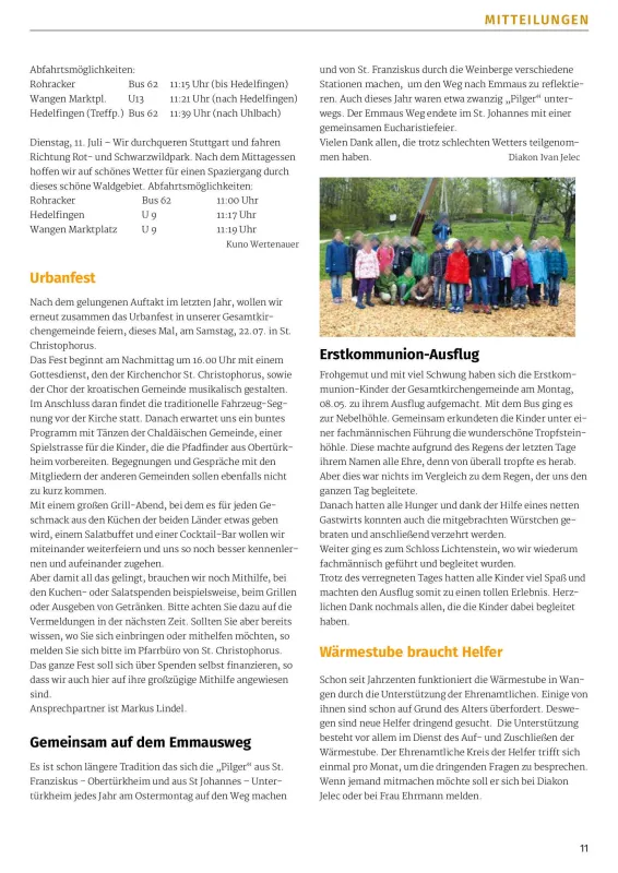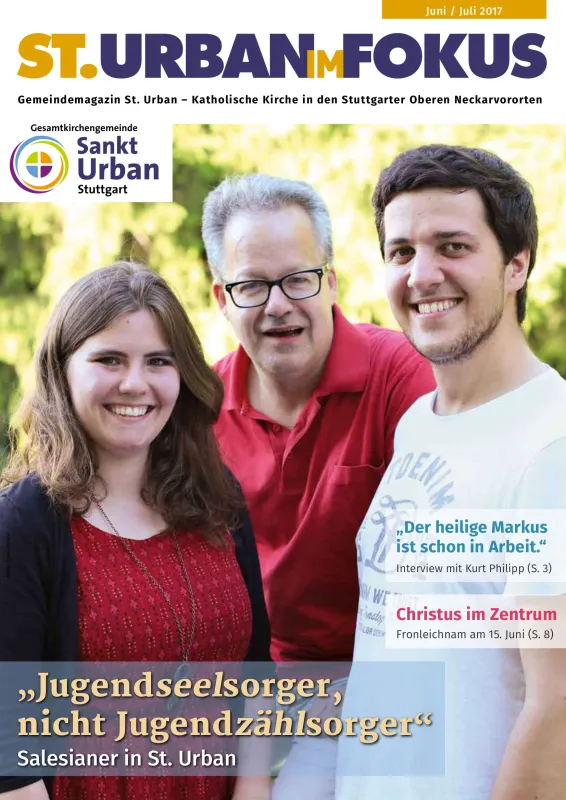 - Kontakt zur Redaktion: Gesamtkirchengemeinde St. Urban, Warthstraße 22, 70327 Stuttgart, E-Mail: redaktion@sankturban.de
