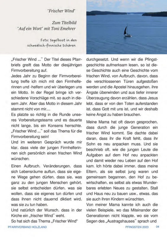 Pfarrbrief des Pfarrverbands Holzland-Steinkirchen, Ausgabe Pfingsten 2023