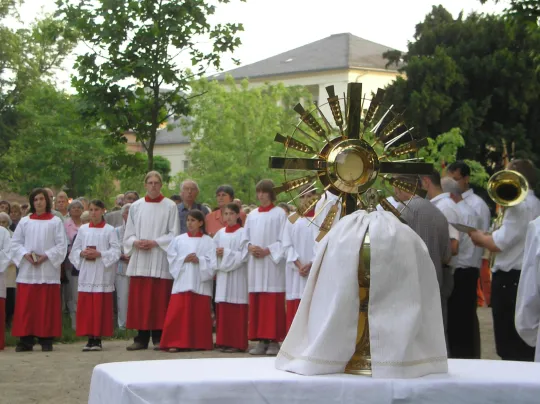 - Befragen Sie Ihren Pfarrer, warum die Gläubigen an Fronleichnam durch die Straßen prozessieren.