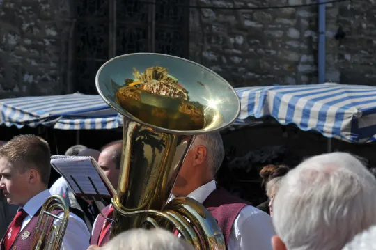 Bildmotive könnten sein die handelnden Akteure, die Zuhörer und der vielleicht besonders gestaltete Kirchenraum.