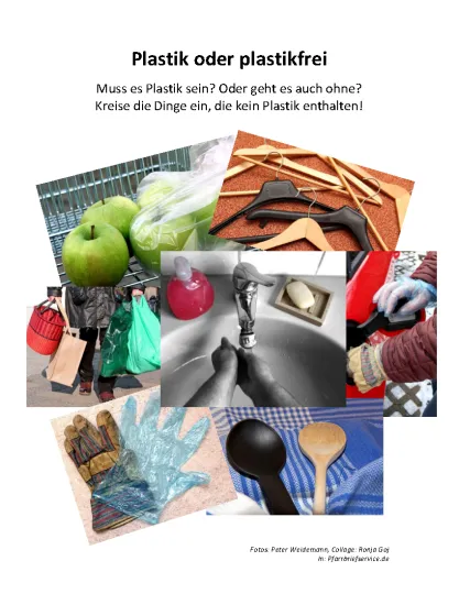 Was haben Sandförmchen, ein Bobbycar, eine Brotzeitbox und eine Zahnbürste gemeinsam? Sie sind aus Plastik! Plastik ist bunt und praktisch und cool, aber es macht auch Probleme. Viele Probleme, denn im Jahr 2015 hat jeder von uns ungefähr 37 Kilogramm Plastikmüll gemacht. So viel wiegt ungefähr ein Schäferhund. Im Nordpazifik gibt es einen Müllstrudel, der so groß ist wie Mitteleuropa. Eine Plastikflasche braucht circa 450 Jahre, bis sie zerfällt. Und Fische denken, dass Plastikteile, die im Meer herumschwimmen, Nahrung sind. Sie fressen den Plastikmüll auf und verhungern, weil ihr Magen voller Müll ist. Ein wichtiges Thema auch für die jungen Pfarrbriefleserinnen und Pfarrbriefleser. Mit Rätseln, interessantem Plastikwissen und Malbildern kommen sie spielerisch mit "Plastik" in Berührung. Wenn auch Sie in Ihrem Pfarrbrief weitere Materialien zum Thema "Plastik" veröffentlichen möchten, dann schauen Sie in unserer Rubrik "Schwerpunktthemen" vorbei, unter /article/stopp-mal-plastik.