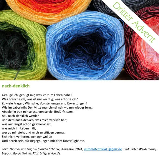 Sie können die Adventsimpulse in Ihrem Pfarrbrief abdrucken. Oder als Fyler in die Briefkästen Ihrer Gemeindemitglieder einwerfen.